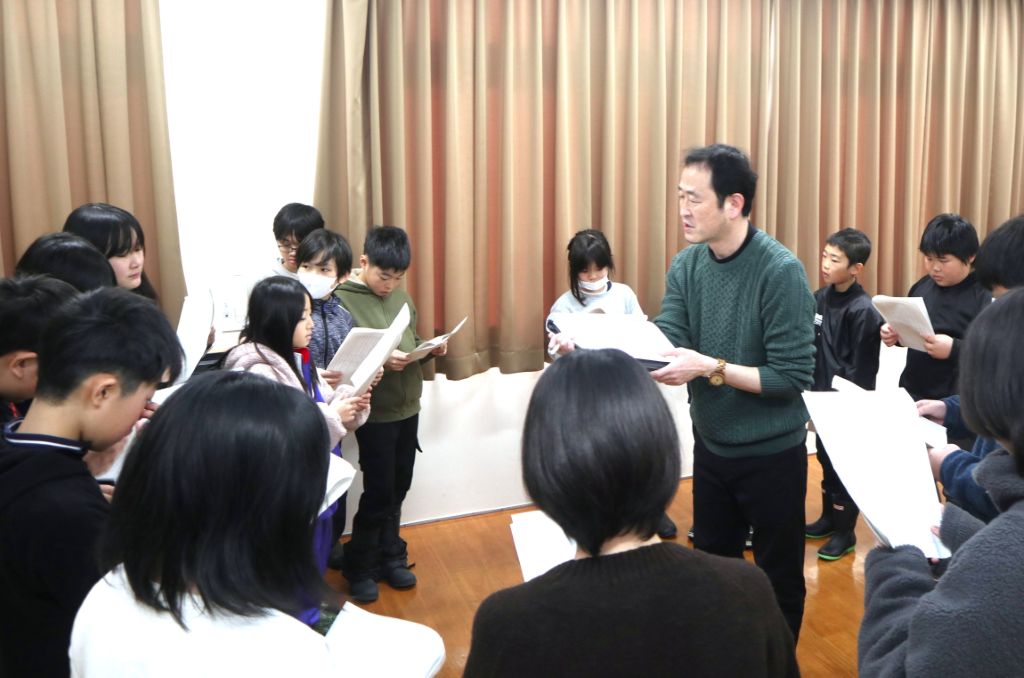 完成報告会後には、飛騨まんが王国で毎年夏に合宿している賢プロダクションから当アニメでキャストを務めた声優・四宮豪さんと冨田泰代さんを講師に、宮川小学校・河合小学校の児童を対象に声優体験ワークショップを実施。